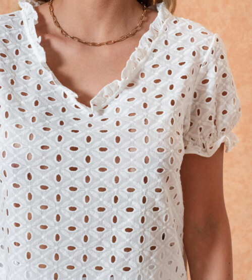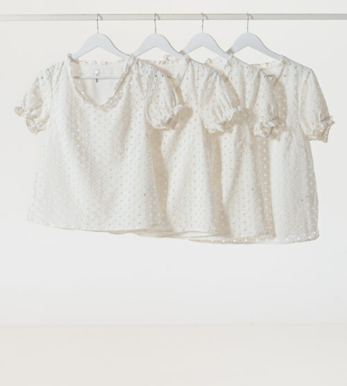 Modelo de Blusa Con Cuello en V, Espalda lisa y manga con elastico