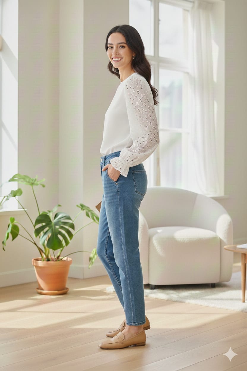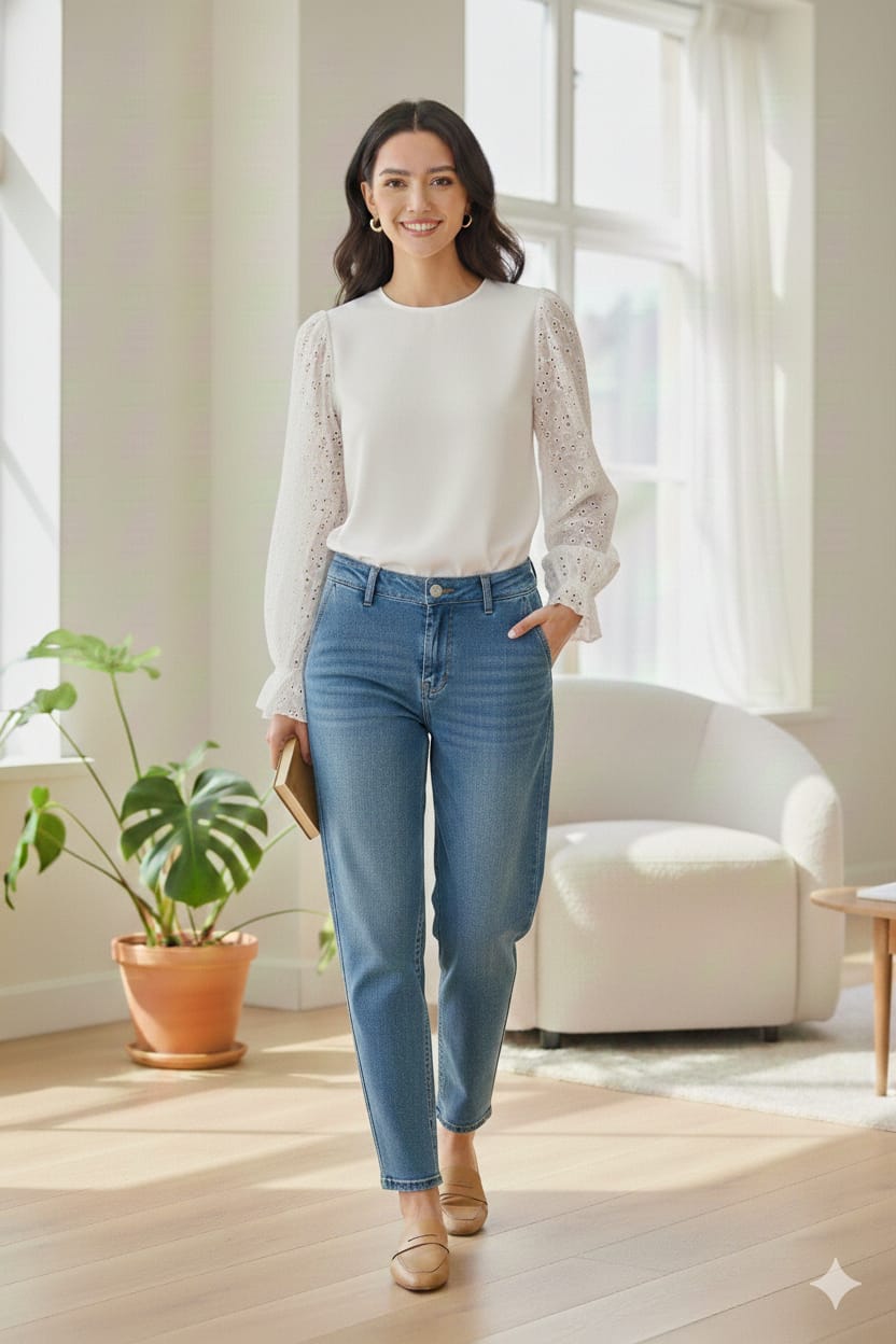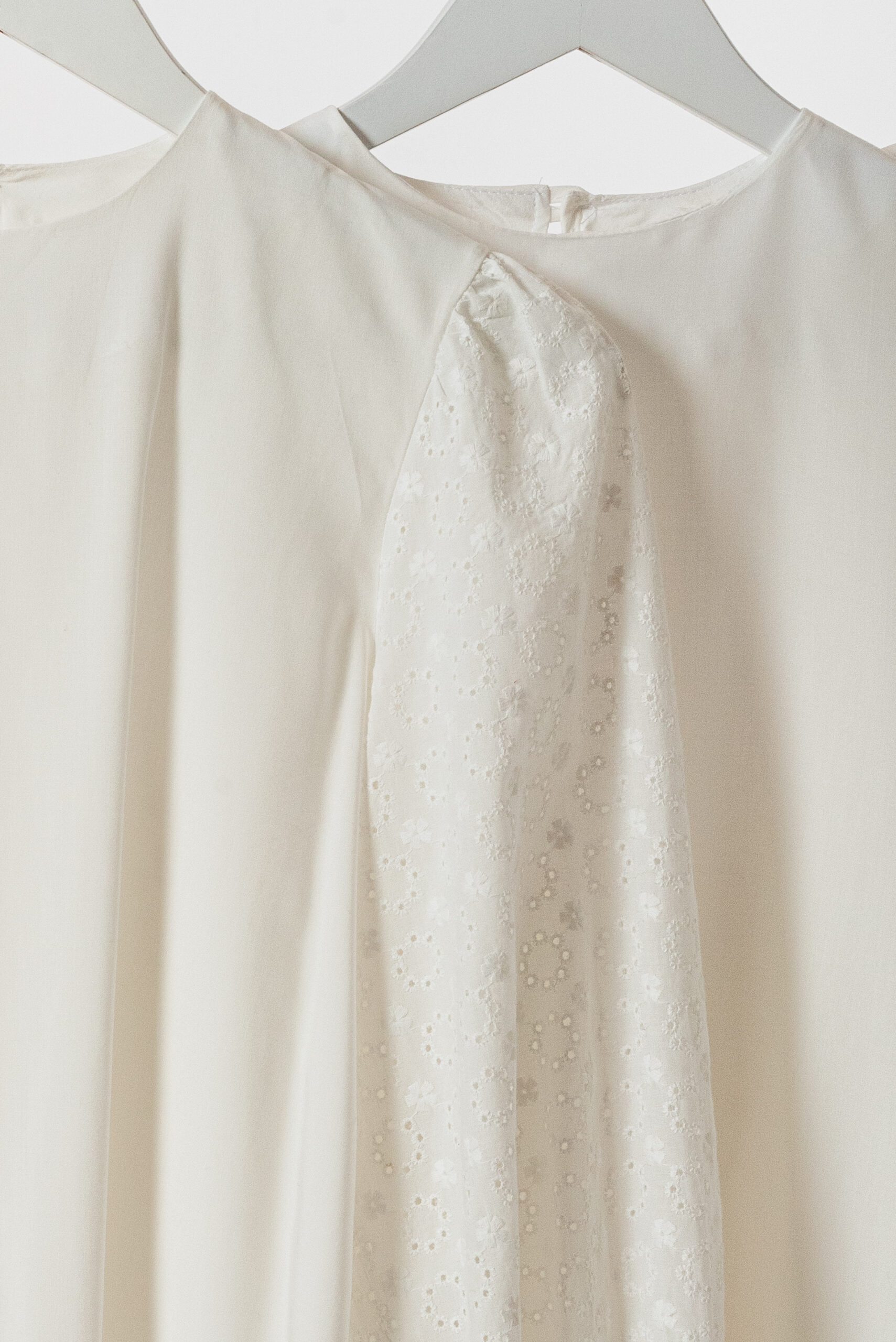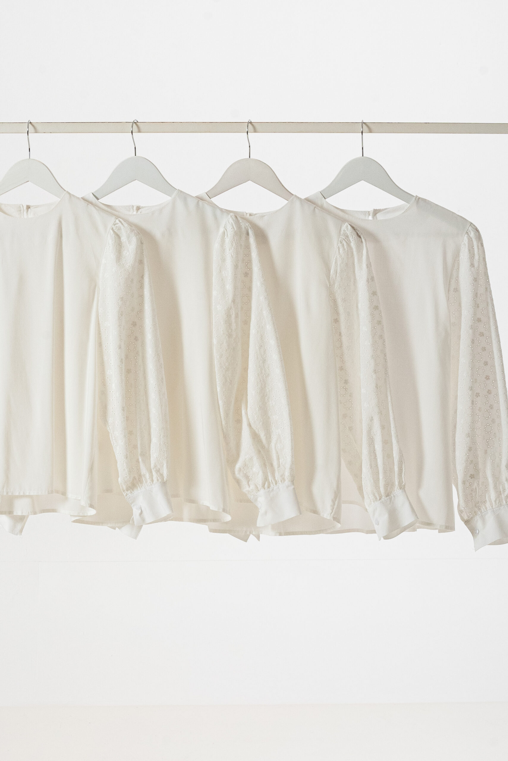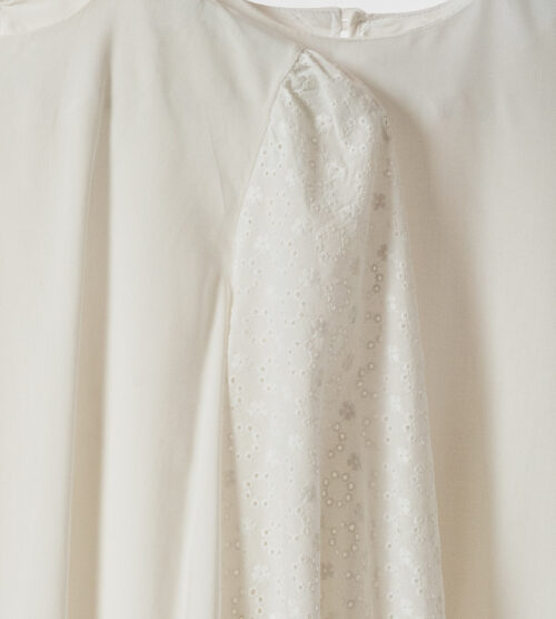 Blusa lisa amplia con manga globo de broderie