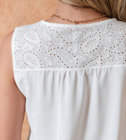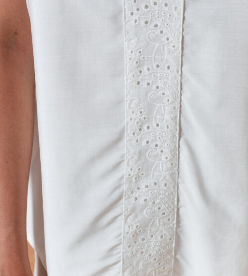 Musculosa De Poplín Rayón cuello Mao Con detalles de broderie