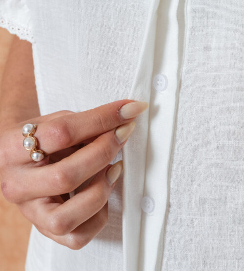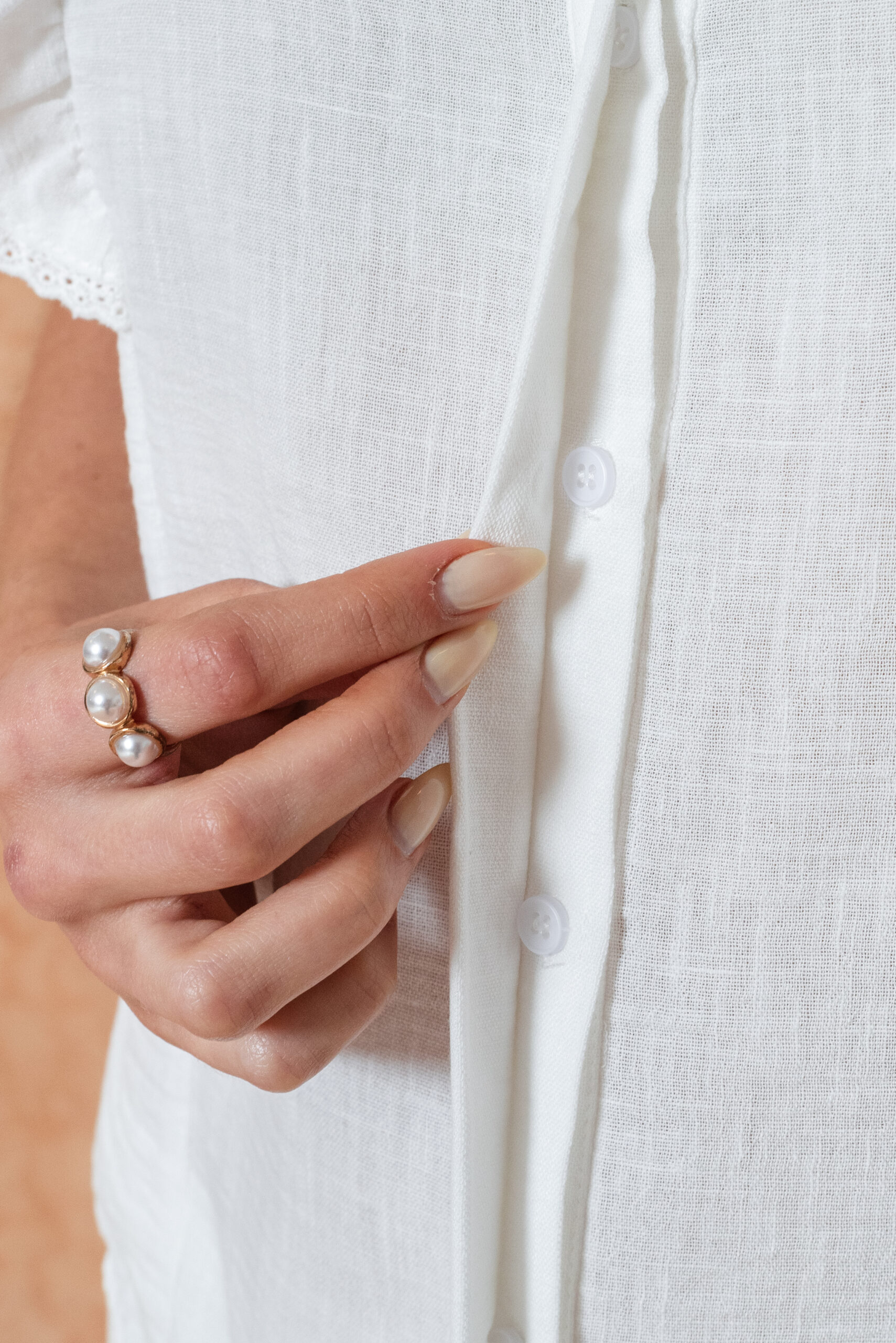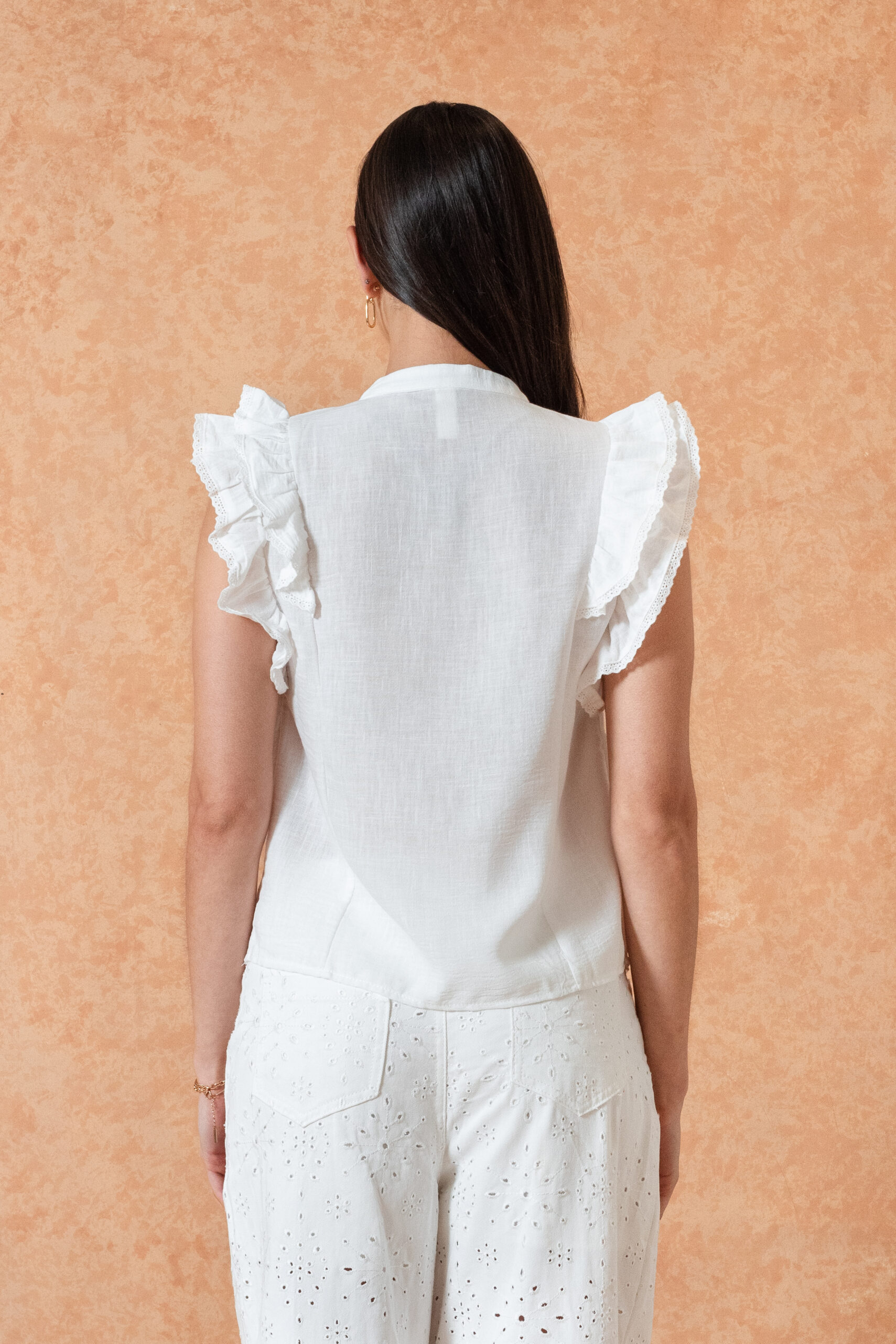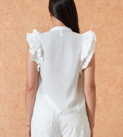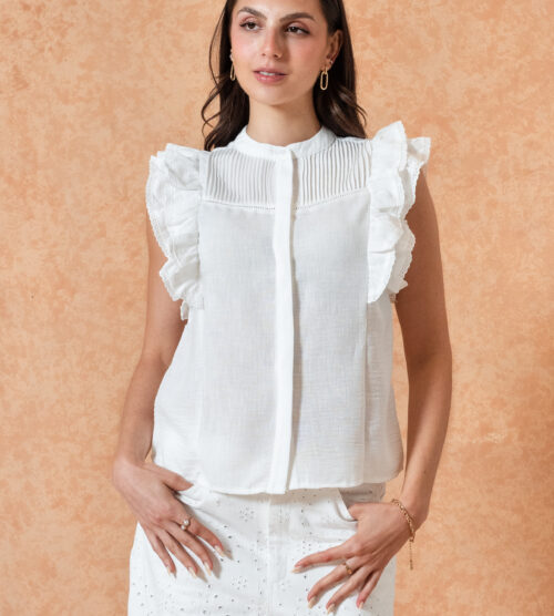 Camisa con volados en hombros y pecho, con canesu de broderie
