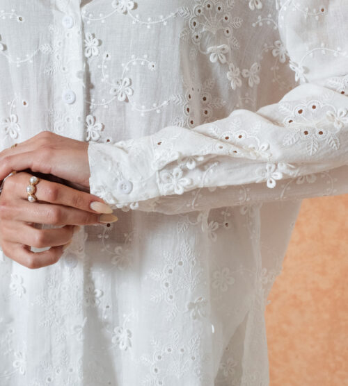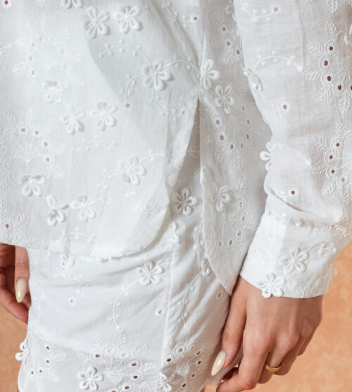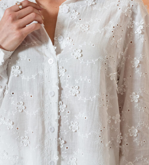 Modelo 100% de broderie 3D con pinza en la espalda.