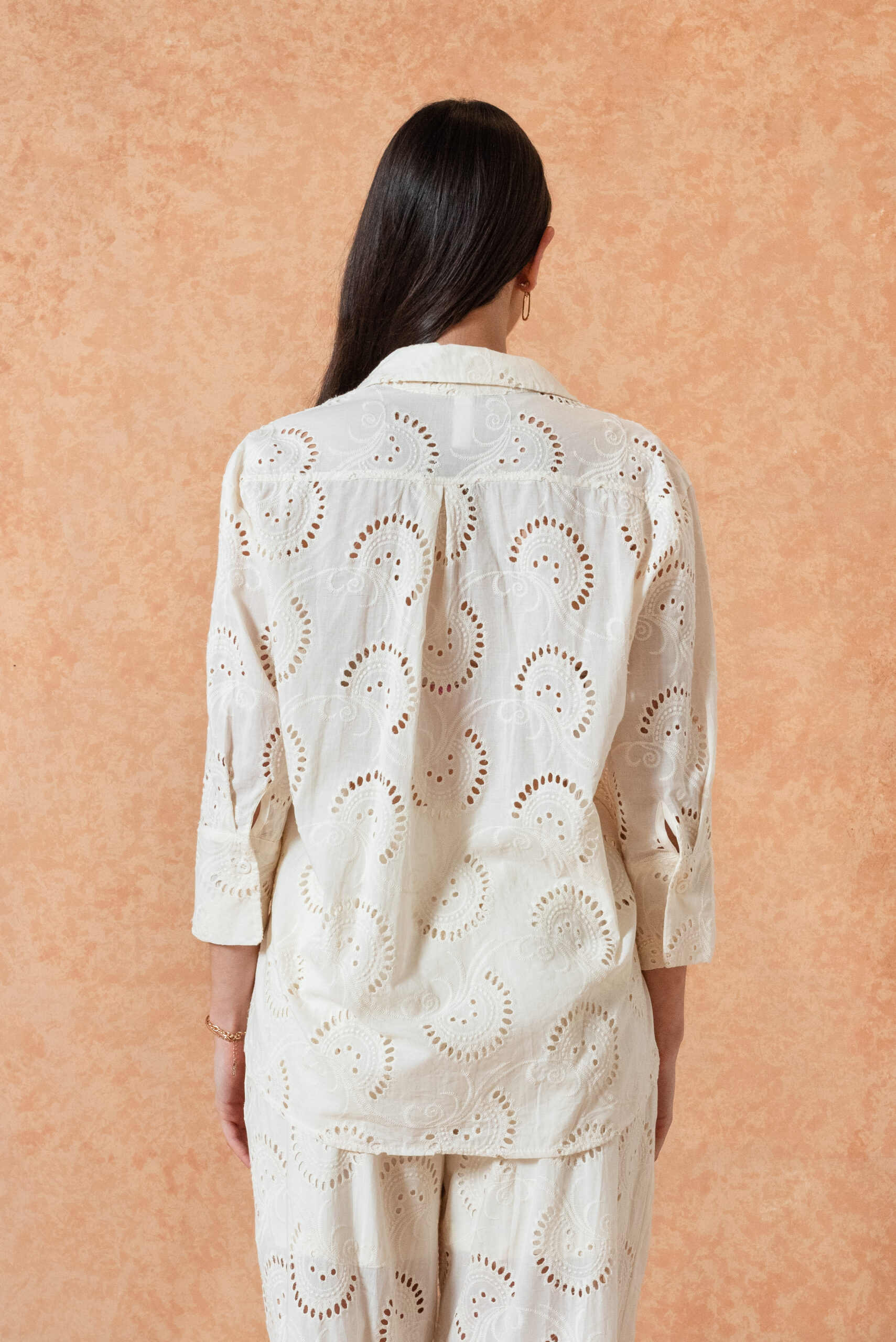 Modelo De camisa con tajo, La espalda más larga con pinza.
