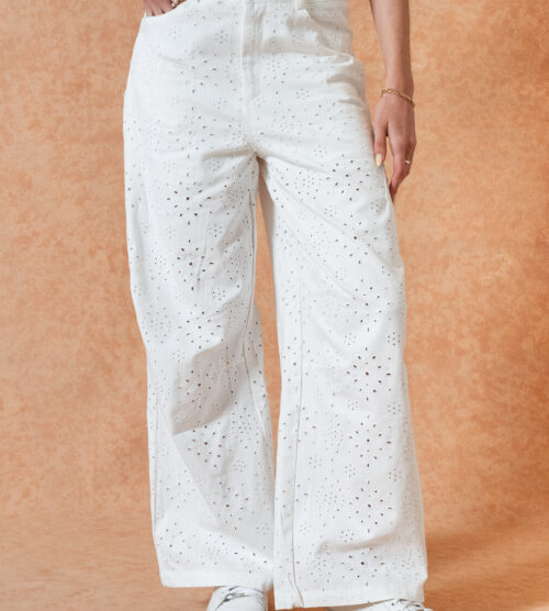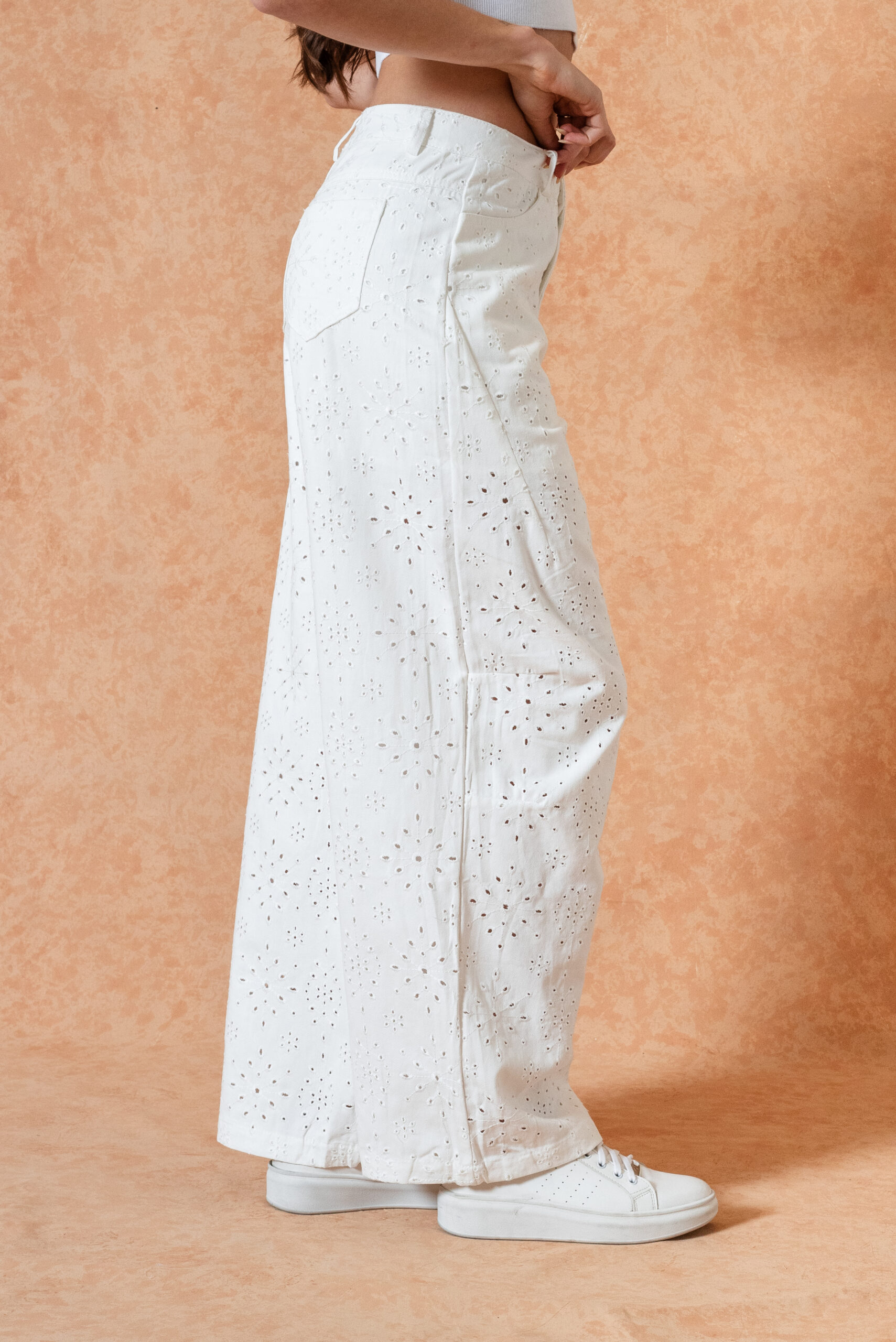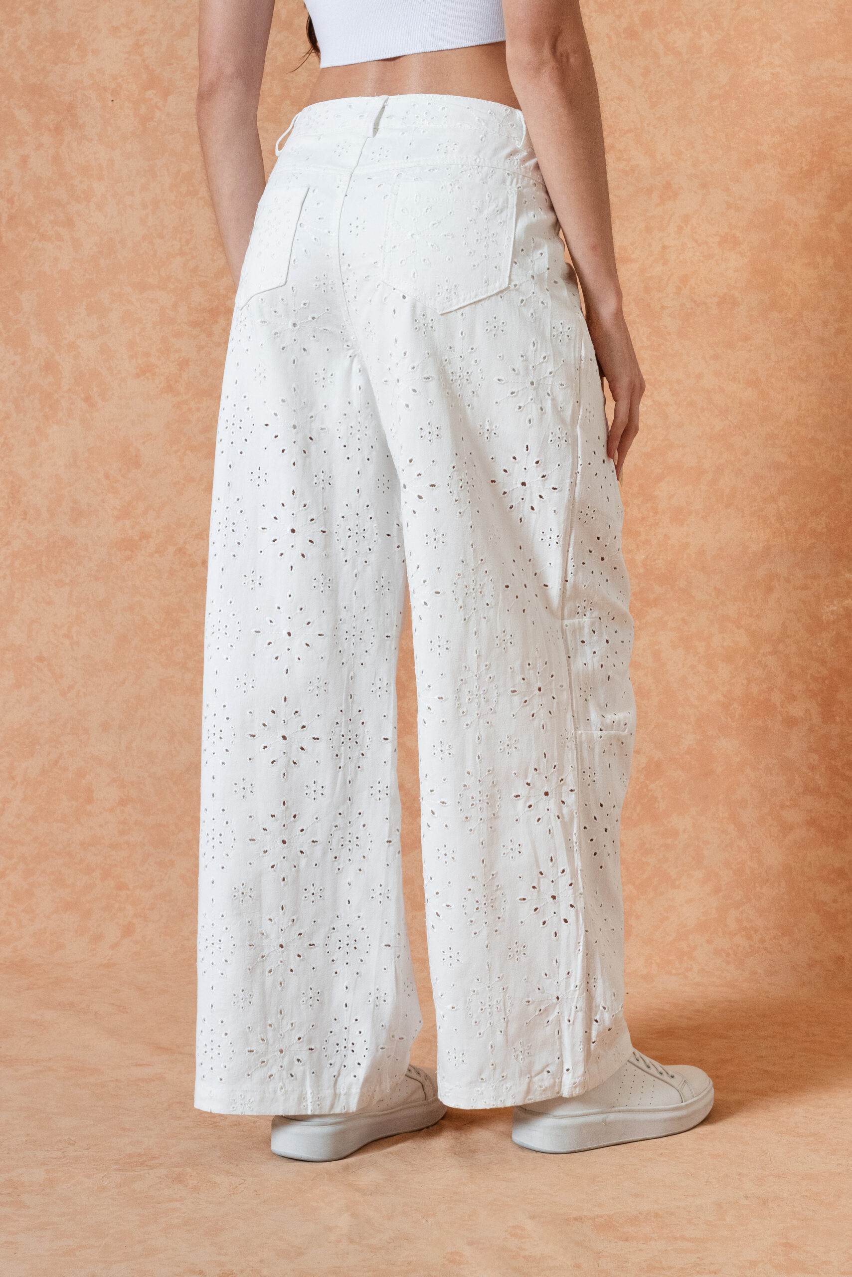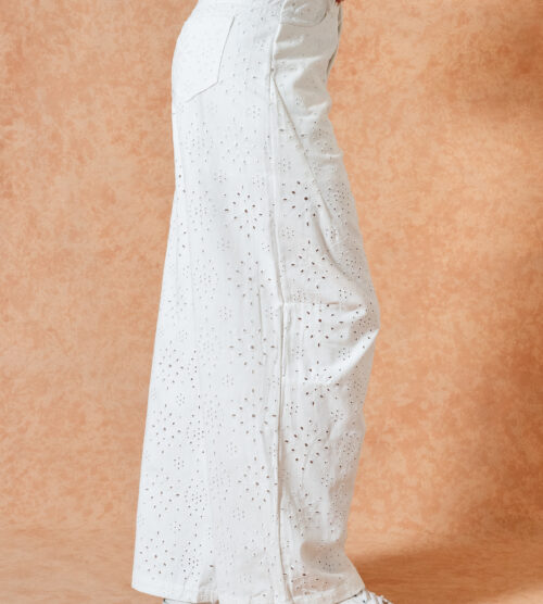Modelo Wile Leg de jeans con broderie.