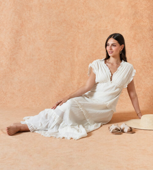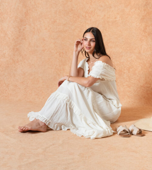 Modelo 100% Algodon, vestido largo con volados y elastico